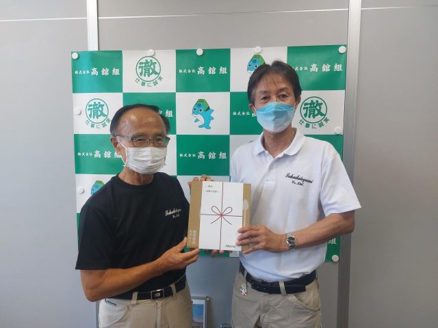 また、総務部としてトイレ掃除に取り組むスタッフ2名に対して、髙舘社長から記念品が贈られました。