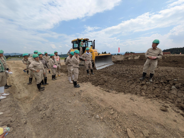 今回は、上沼道上広田地区盛土工事の現場で活用している、3次元施工データが搭載されたMC(マシンコントロール)ブルドーザーの見学を行ったほか、国土交通省の現場でICT施工を行う際に必要な書類や手続きなどについて、実際に担当している技術者が紹介しました。