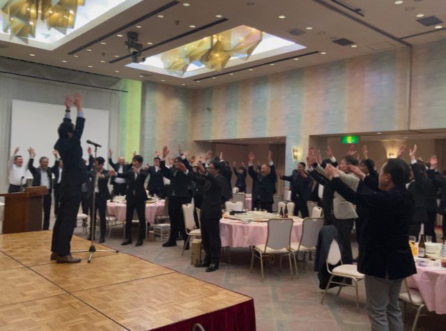 あっという間の楽しい時間、最後はT専務からバトンを受け継いだ高舘常務による万歳三唱で締めくくりとなりました。